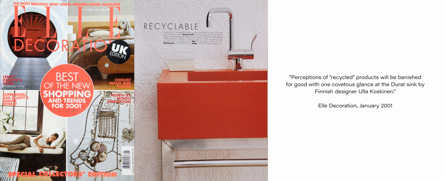 Design-panostuksellaan Durat onnistui nostamaan profiiliaan ja erottautumaan kilpailijoistaan. Se sai palstatilaa merkittävissä design-lehdissä kuten WallPaperissa, Ellessä, Framessa ja lukuisissa muissa kansainvälisissä julkaisuissa. Julkisuuden huomasivat myös suomalaiset suunnittelijat, ja sen myötä monet heistäkin löysivät Duratit suunnitelmiinsa.