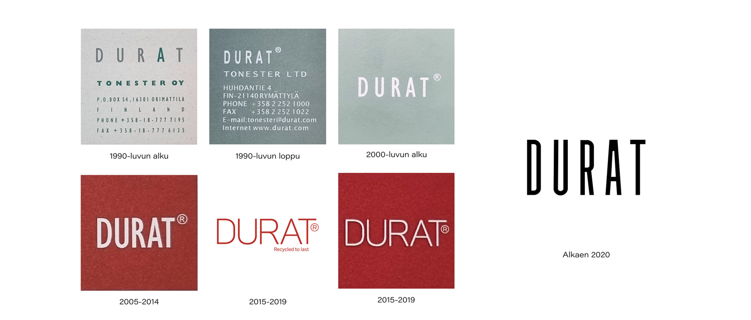 Duratin brändi-ilmettä on vaalittu huolellisesti vuosien saatossa. Logo on ajan kuluessa päivittynyt, mutta edelleenkin siinä on vahvaa sukunäköä alkuperäiseen versioon. Ensimmäiset parikymmentä vuotta graafikko Sissu Muhujärvi vastasi logon ja visuaalisen ilmeen kehittämisestä. Vuonna 2020 brändi-ilmettä pohdittiin syvällisesti tavoitteena selkeyttää ilmettä niin, että se vastaa yrityksen tämänhetkisiä tavoitteita ja arvoja. Siinä yhteydessä vetovastuu siirtyi graafikko Päivi Helanderille.