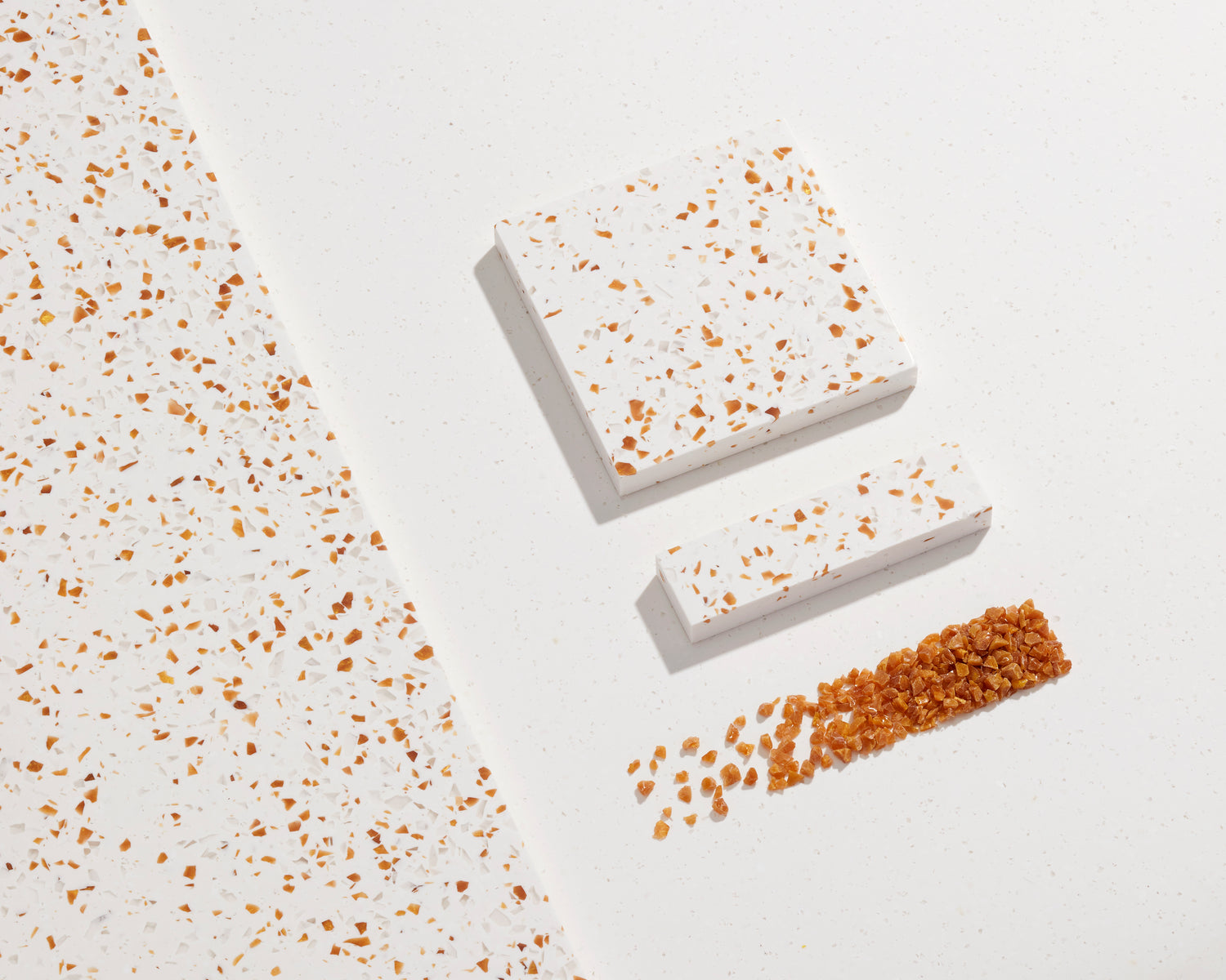 The world's first material combining recycled PET resin and recycled solid surface, Durat Plus contains up to 55 % recycled materials.